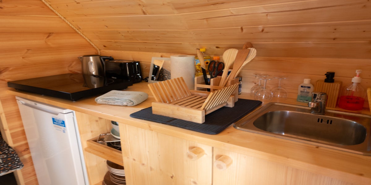 - Confort : un séjour chaleureux avec espace repas, une kitchenette équipée (micro-ondes, cafetière, bouilloire, grille-pain, vaisselle), un vidéo projecteur pour vos soirées cocooning, ainsi qu’une salle d’eau avec douche et WC. Le linge de lit et les serviettes sont fournis pour un séjour en toute sérénité.