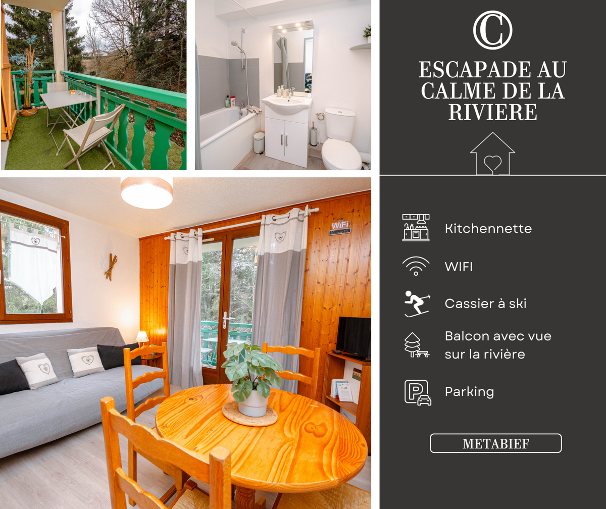 - Atout : profitez d’un moment de détente sur le balcon surplombant une jolie rivière, avec le doux bruit de l’eau en fond. Un cadre apaisant pour se ressourcer.
